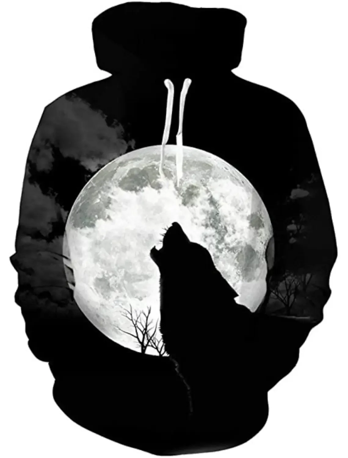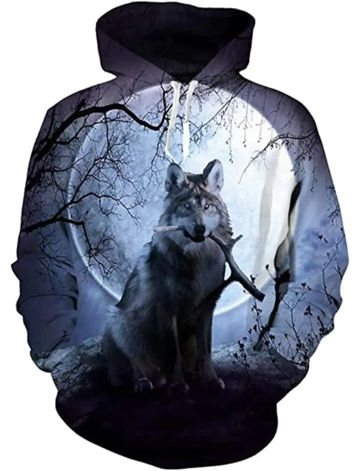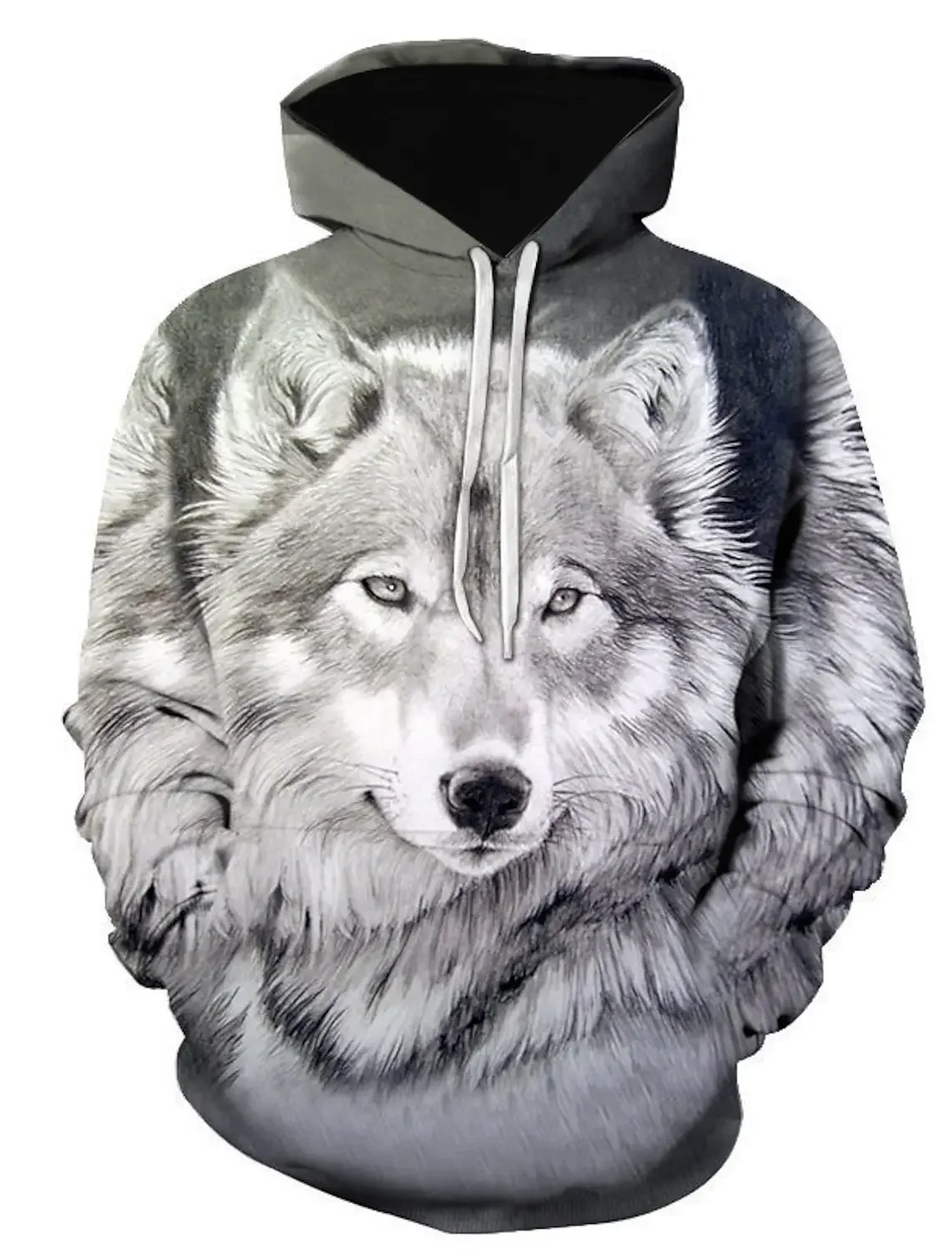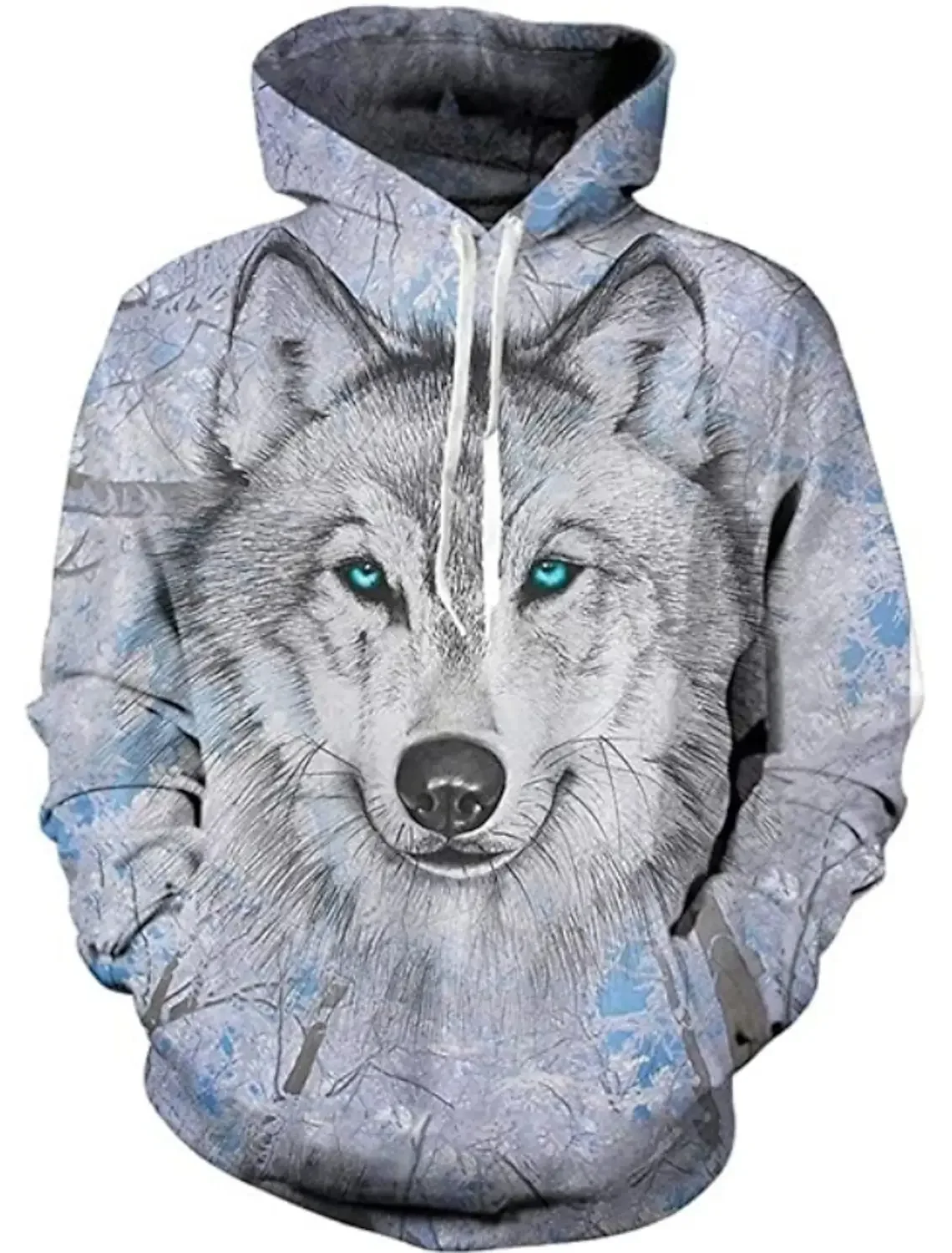 Wolf Graphic Men's 3D Print Pullover Streetwear Hoodies Dark Green Long Sleeve Hooded Spring & Fall Designer Top